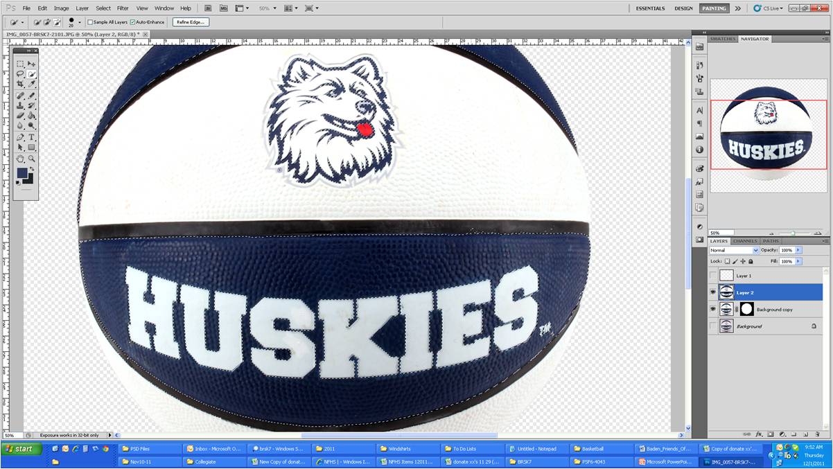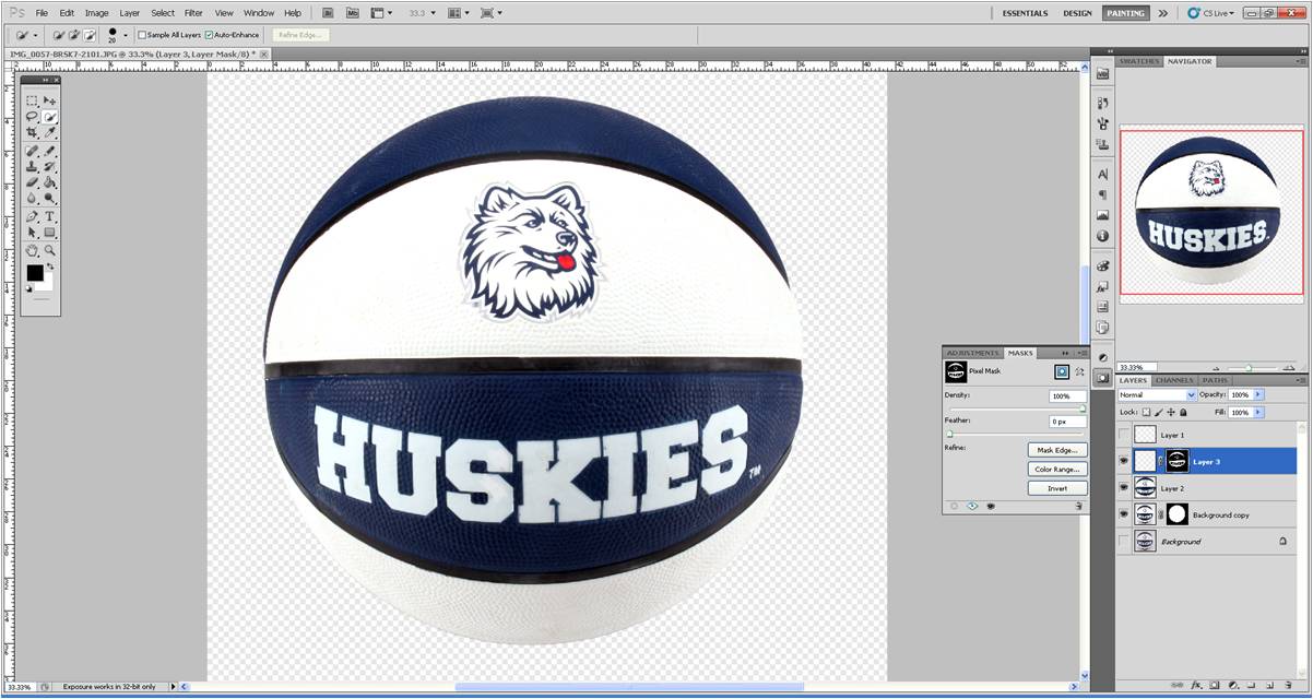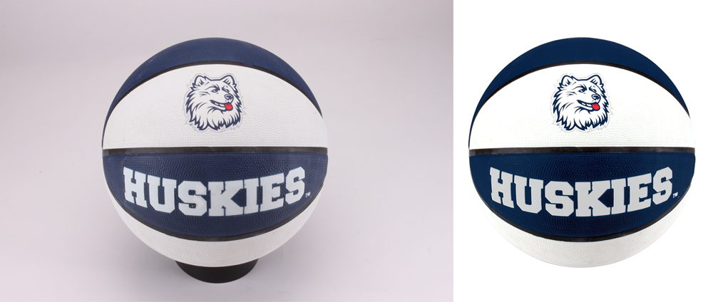 When working with photographs of products, sometimes the colors are uneven, especially when working with rubber items, such as basketballs.  That’s been my project lately, making rubber basketballs look their best.